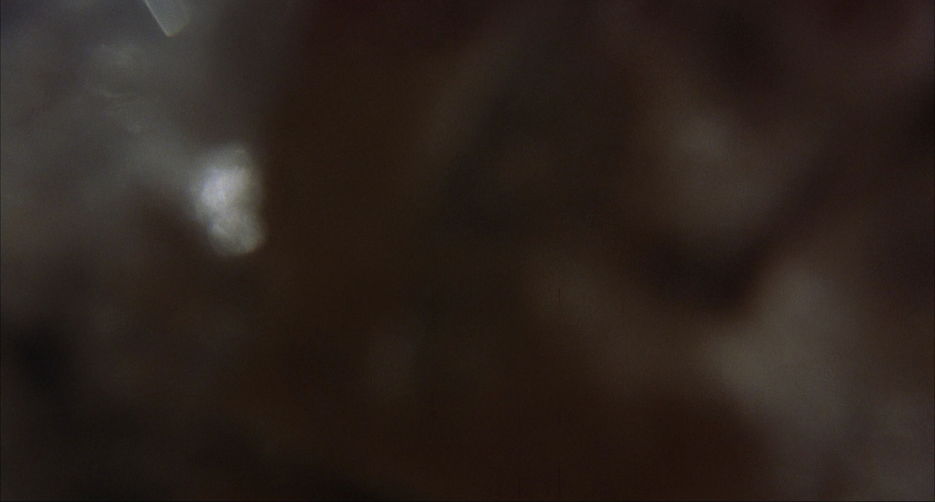 From further away, reflecting Merrill’s retreated position, the camera in the confusion now points into the bushes. This allows a dark background so the closet door can be reflected. This connects to the door motif, and, complemented by the door in the background of the video itself, plays into the film’s strategy of fusing the mundane inside with the dramatic outside, often through the circle motif. It is hard to think of anything more mundane than the insides of a closet, and the jackets contribute as well. (They may also connect to Graham’s jacket that will play a part in the next scene.)