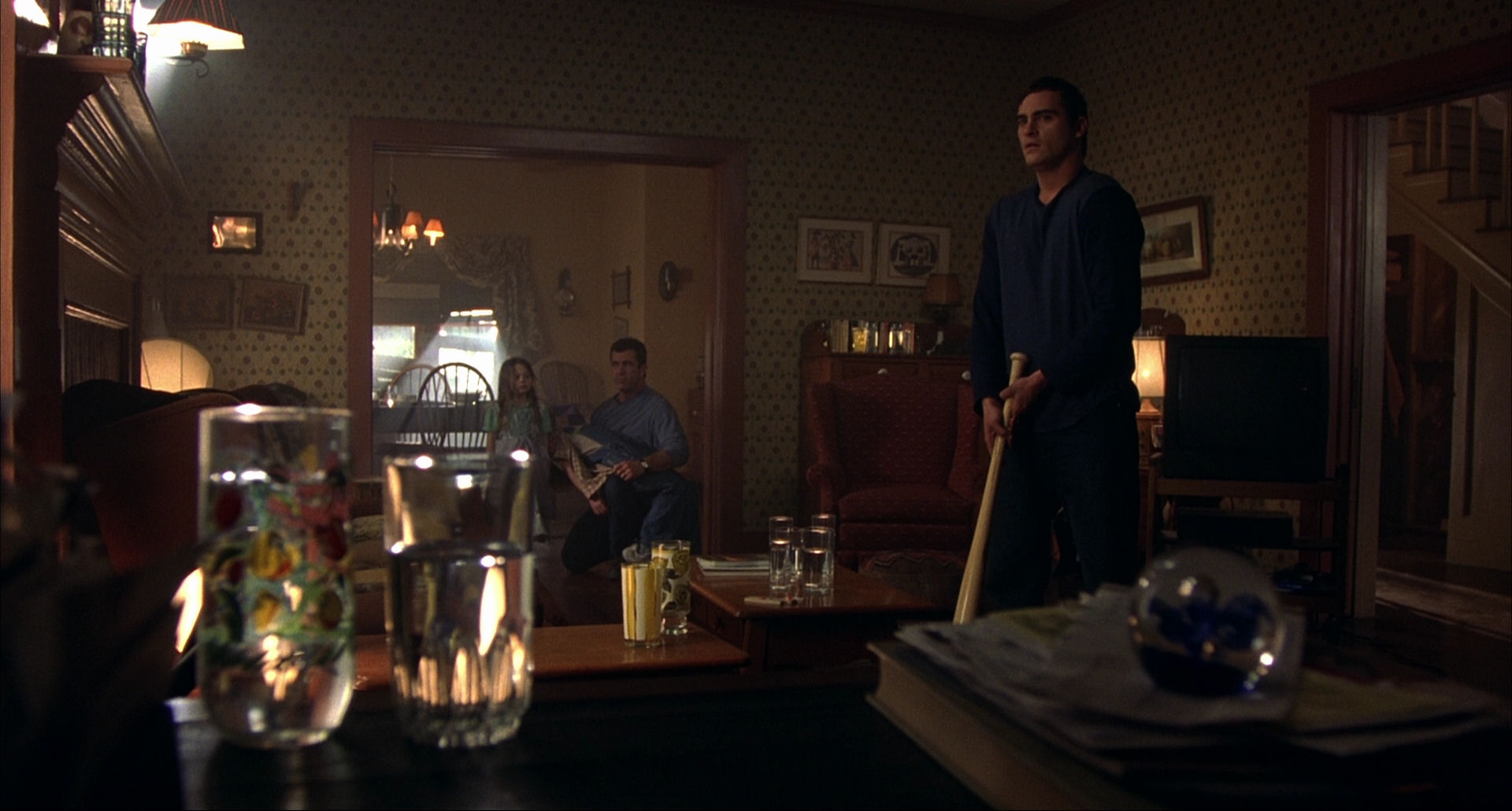The house will become the family’s fortress and it is receiving lavish attention from cinematographer Tak Fujimoto. In his earlier films, Shyamalan was always interested in visually impressive buildings, but especially one shot in Unbreakable is a harbinger of his Signs strategy of houses playing a more active role in the mise-en-scène:
