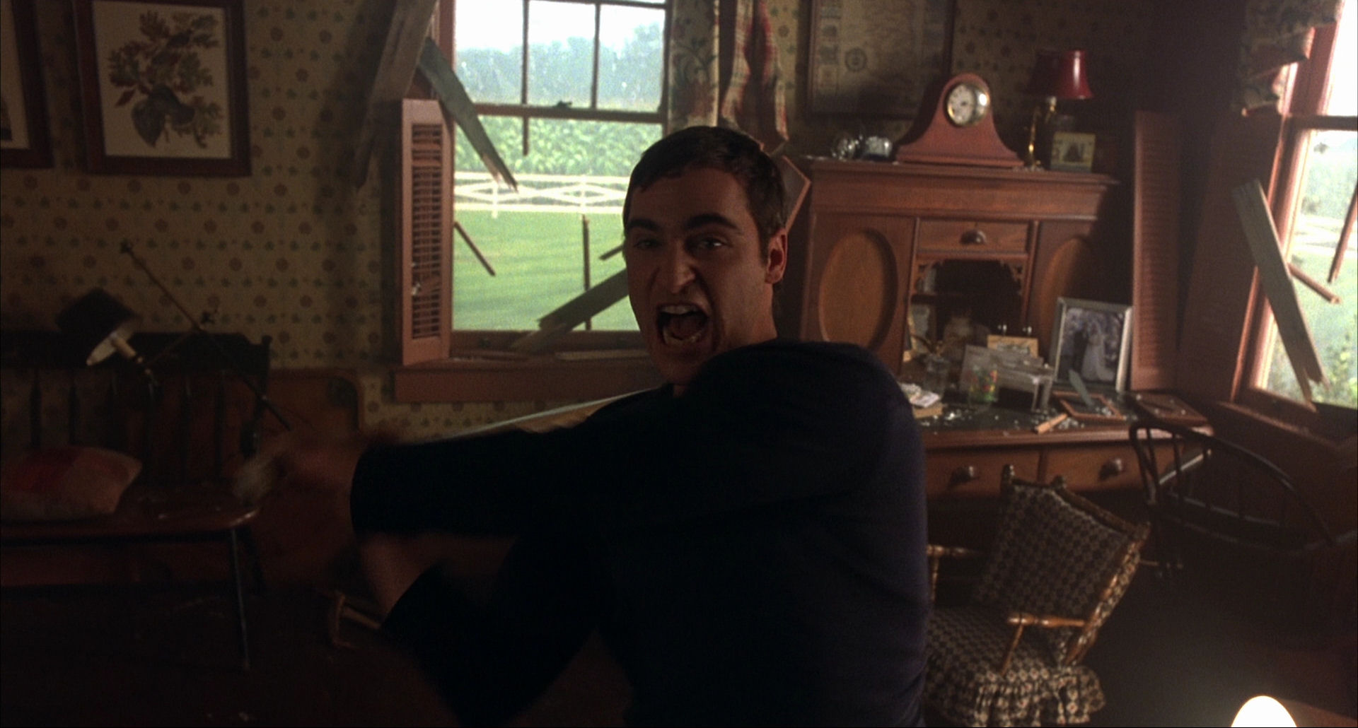 “I want you to be in the coats at the end,” Shyamalan says he told Phoenix in the Blu-ray bonus material. The film music joins in, by turning its familiar three-tone motif into hysteria, as if a racing heart translated into music, but also with an icily cold, mechanical, “alien” undertone.