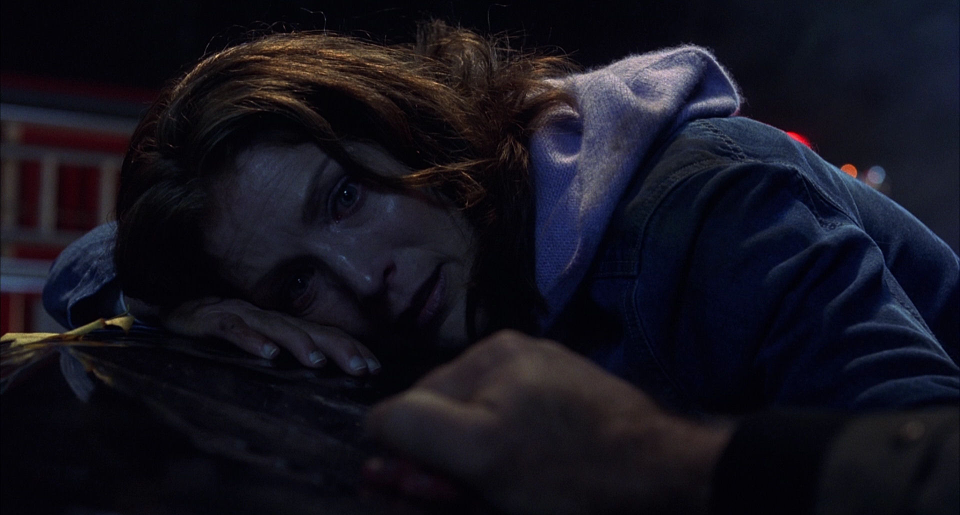 Finally, kudos must be given to Patricia Kalember for her performance as the dying Colleen. She only appears in one scene, the third flashback of the traffic accidents, that is inserted into the stand-off with the Nemesis Alien. Her pained smile and the way she is almost imperceptibly extinguished in the moment of death is acting of highest order. This scene was the first to be shot in the Signs schedule, just a couple of days after 9/11, so it became a death scene with unusual resonance for everyone on set.