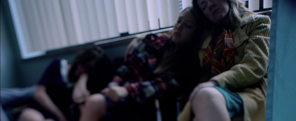 One of the saddest scenes of It Follows occurs when Paul, pondering passing on the curse, rounds a street corner with two haggard prostitutes under a leaden sky in a post-industrial wasteland. The scene ends with one of the prostitutes shown from behind, and the angle and her red pants seem to form a direct connection to the next scene: here the camera closes in on Jay from behind, and she is dressed in bright red, her most powerful connection to that colour in the film. (Paul is also present, reinforcing the connection.) Another link in the loss of innocence and the prostitution that are besmirching Jay: