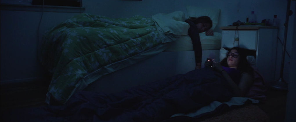 It is definitely something dreamlike over the entire It Follows, and at times we have the feeling that the Follower is just a figment of the mind of the victims, especially since it can only be seen by the ones afflicted with the curse, as if a hallucination. Another film with a somewhat unreal, dreamlike mood is Signs (M. Night Shyamalan, 2002), which also has an overrepresentation of sleep. (Described in part 3 of my analysis of that film.) At every point, however, Signs emphasises the very awakening from sleep, often marked by a sudden jolt, connecting sleep to a mood of tortured existence, very different from the serenity of sleep in It Follows.