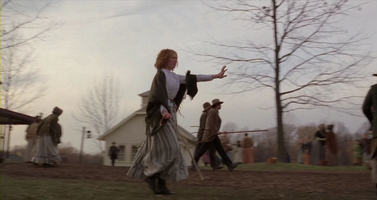 At one point in The Village the Edward Walker character says: “I cannot explain in words.” Like many of the other articles in this series, this entry will take him on his word. The analysis will thus lean heavily on screen shots, preserving the film’s own gestures, often rearranging them in surprising combinations. Virtually every shot of the two examined sections will be shown. This may sound daunting, but in this film every shot is highly deliberate, every shot is counting, and many shots are made in long takes, greatly reducing the number.