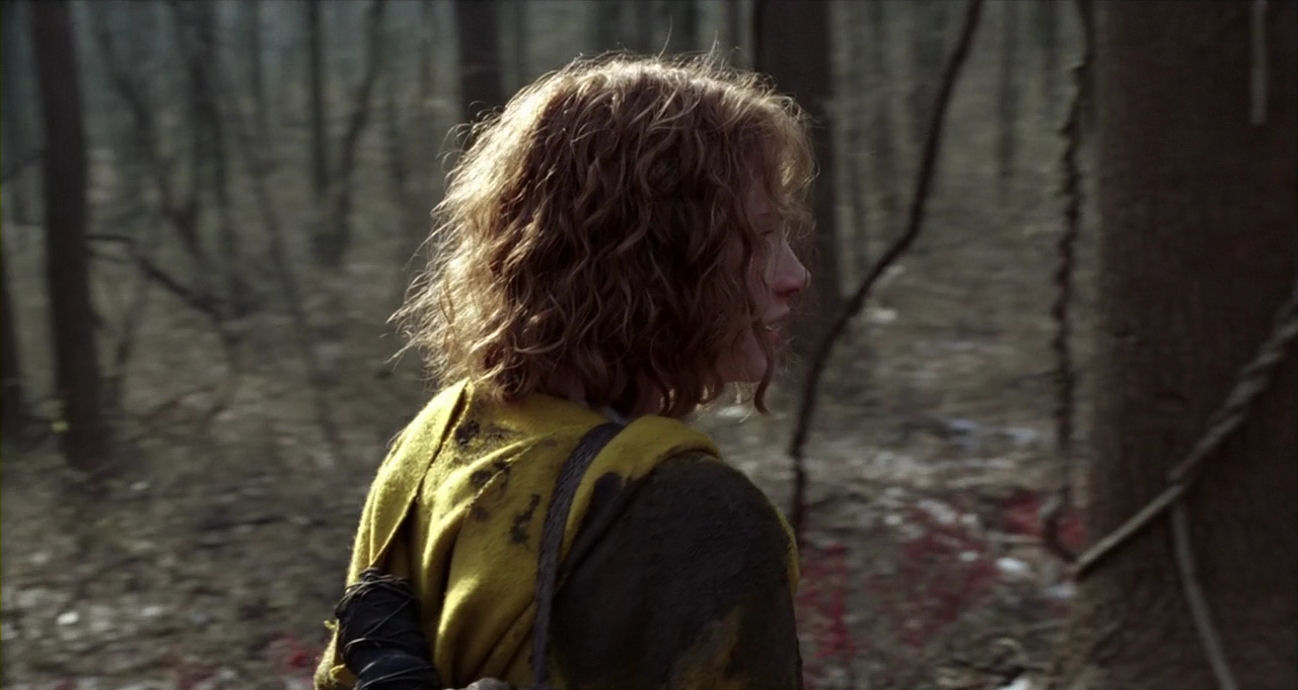When Ivy appears in the first shot of the quest, it is a virtual re-introduction of the character. She looks like a new person in the peculiar cloak, about to embark on something that hitherto was totally alien to her, as afraid of the woods as anyone. But the parallel with Lucius abides: