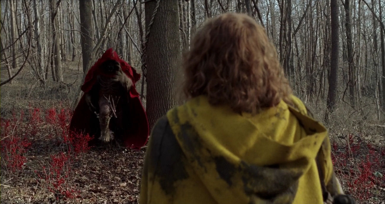Why is all this important? Because nightmares are often crammed with strange repetitions, grinding on and on, with no apparent reason other than “dream logic”. In combination with the film’s sluggish pace, the activation of the above patterns simply reinforces our experience of the quest as nightmare, a horrific version of the heavily rule-based village life. (We should also remember that the blind Ivy cannot grasp the full impact of Noah’s aping, so that strand is mainly included for the benefit of us, the viewers.)