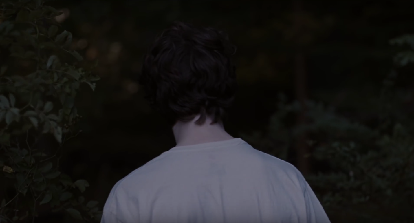 It is not surprising that his first dream revolves around an urge to connect with death. Conrad enters a mysterious forest, and in one shot he is seen from behind while the focus plays with foreground and background. In several ways this recalls how the protagonist of Trier’s previous film Oslo, August 31st (2011) enters the woods for a suicide attempt. Melanie lies on the ground as if dead, and the Isabelle-Melanie parallel helps provide a metaphor, here constructing the cheerleader as a medium for Conrad to enter communion with his dead mother.