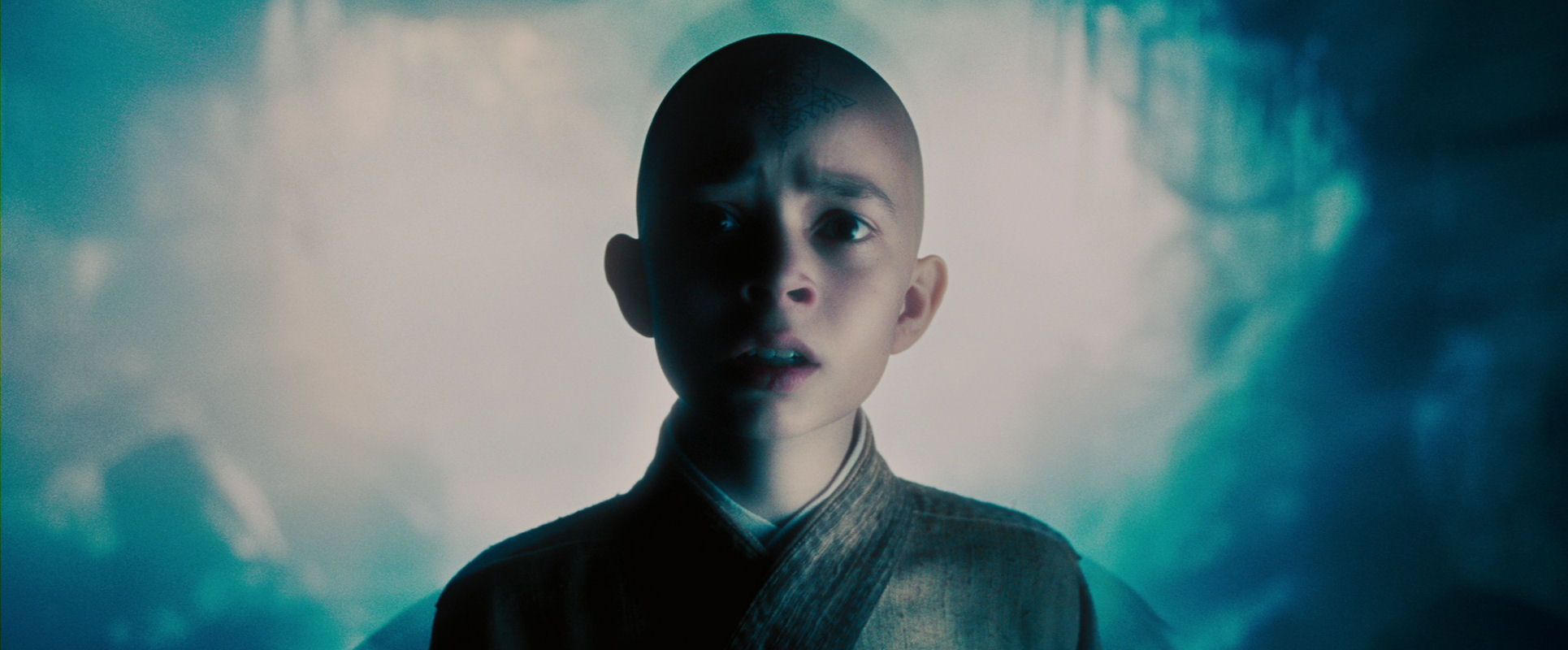 Aang is played by Noah Ringer, of whom this author must confess a great fondness. He has clear limitations and little projective power in dialogue delivery – his supposedly rousing speech to the inmates of the earthbender prison is nothing to write home about – but he is athletic and very good at the physical parts. He is actually quite impressive, especially since he had no previous acting experience. His face is truly like an “open book”, and there is something very heartfelt, sincere and immediate about him. He is doing an especially fine job in the more abstract, body-language scenes, from which we are going to see a lot in these two articles. The following slide show presents him in fine style: