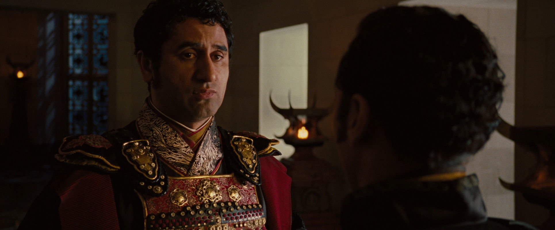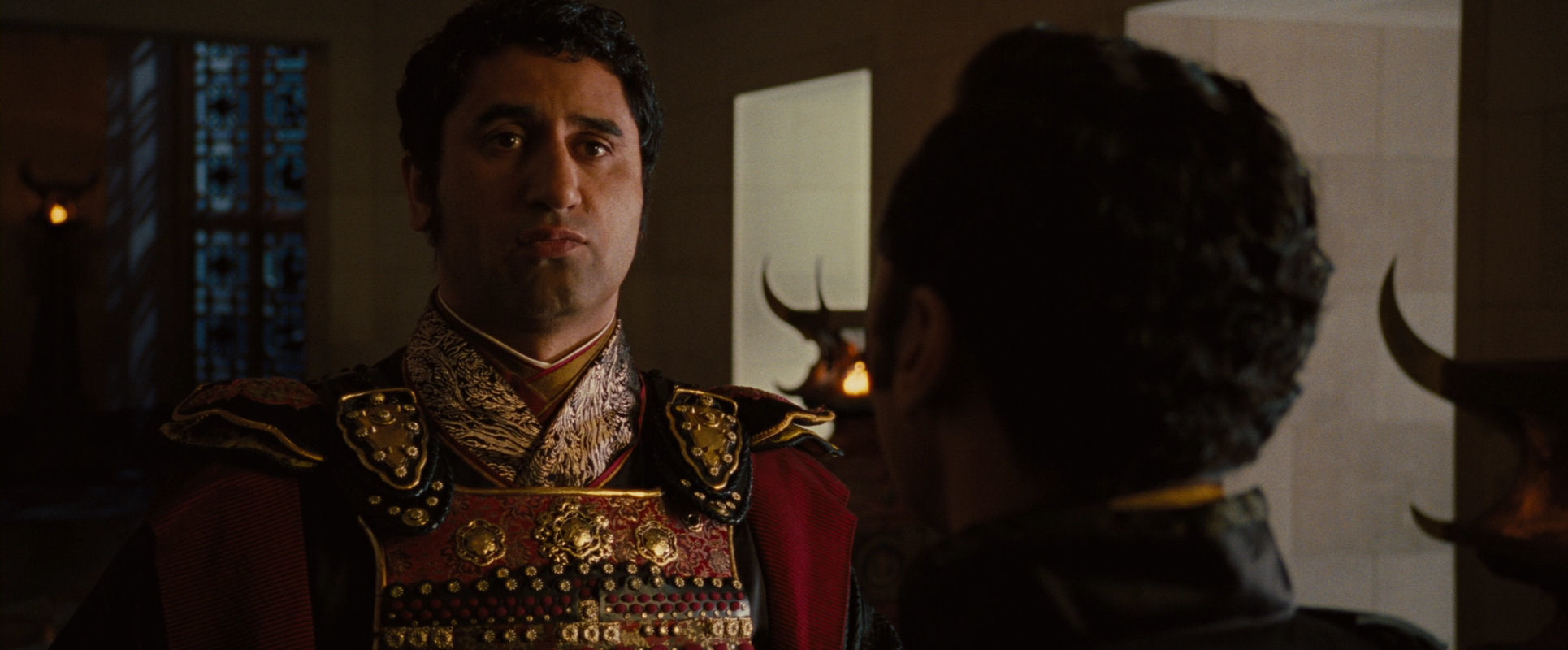 …now Zhao has said something interesting. Ozai stops and while the take is still running he turns around and they adopt an over-the-shoulder constellation.