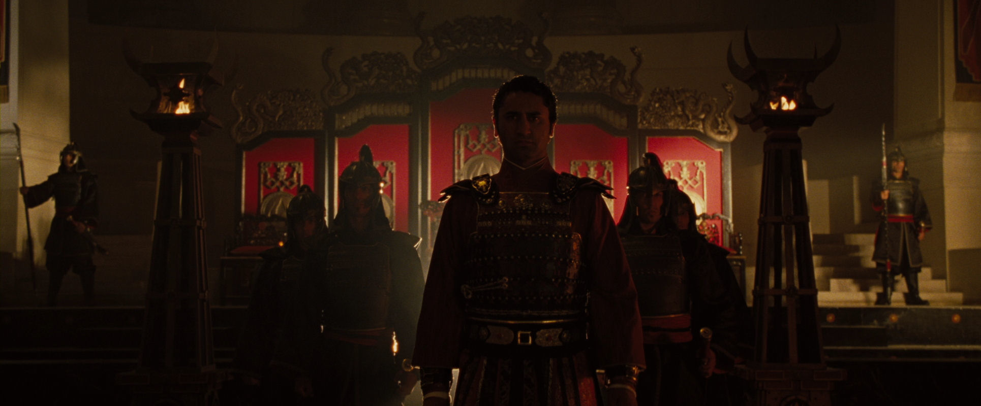 All six scenes featuring the leader of the Fire Nation, Lord Ozai, are distinctly staged, as if further underlining that we are dealing with the film’s most powerful and exalted figure.