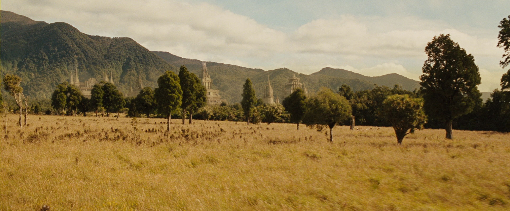 Here a low-flying camera, in elegant and exhilarating fashion, glides over the fields towards Ozai’s far-away castle (see below slide show). We hear the start of a conversation on the soundtrack. The often information-heavy dialogues of the film are not always deftly executed, but it must also be said there are several situations with conversation “played over” visually captivating images, making exposition more pleasing to digest.