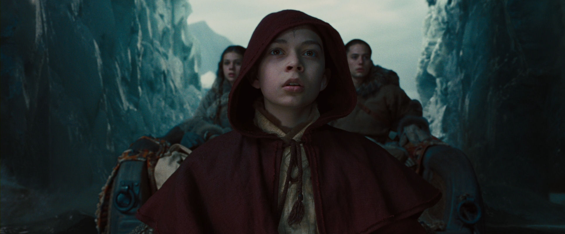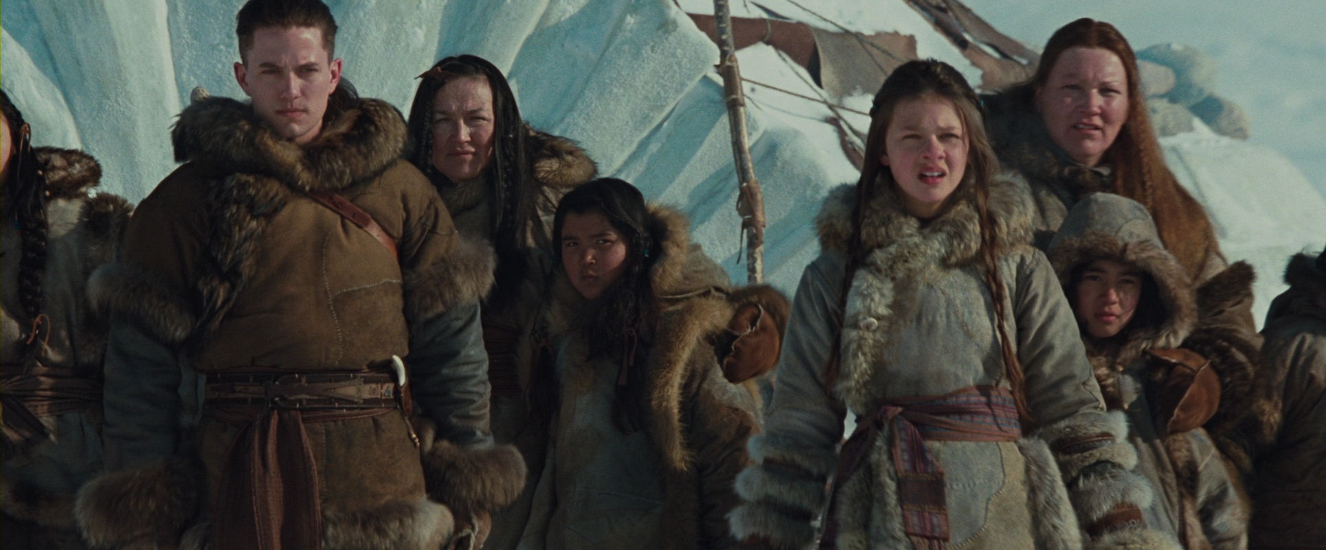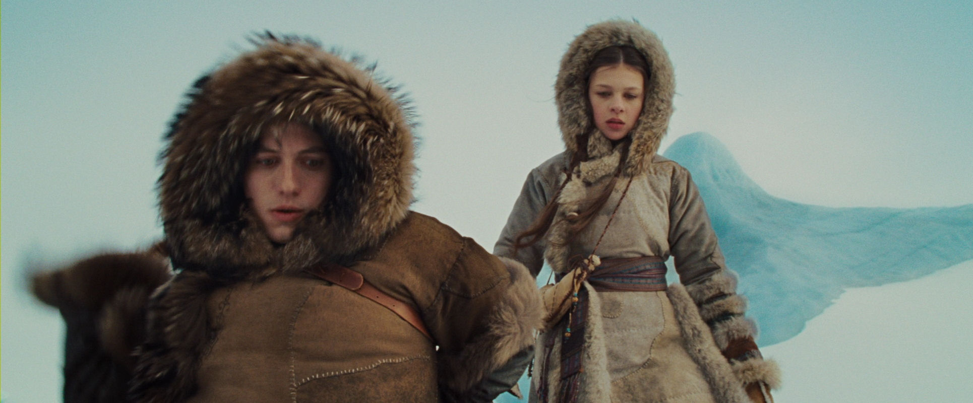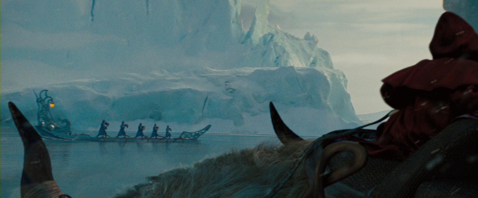 The opening sequence, including the discovery of Aang inside the globe of ice, is (without being brilliant) a very well-made piece of film, always interesting to look at however many times the film is watched. It has a nice mixed approach of immersing us in the characters’ point-of-view and a more objectively observing position, with fine use of crane and overhead shots, and the almost featureless surroundings.