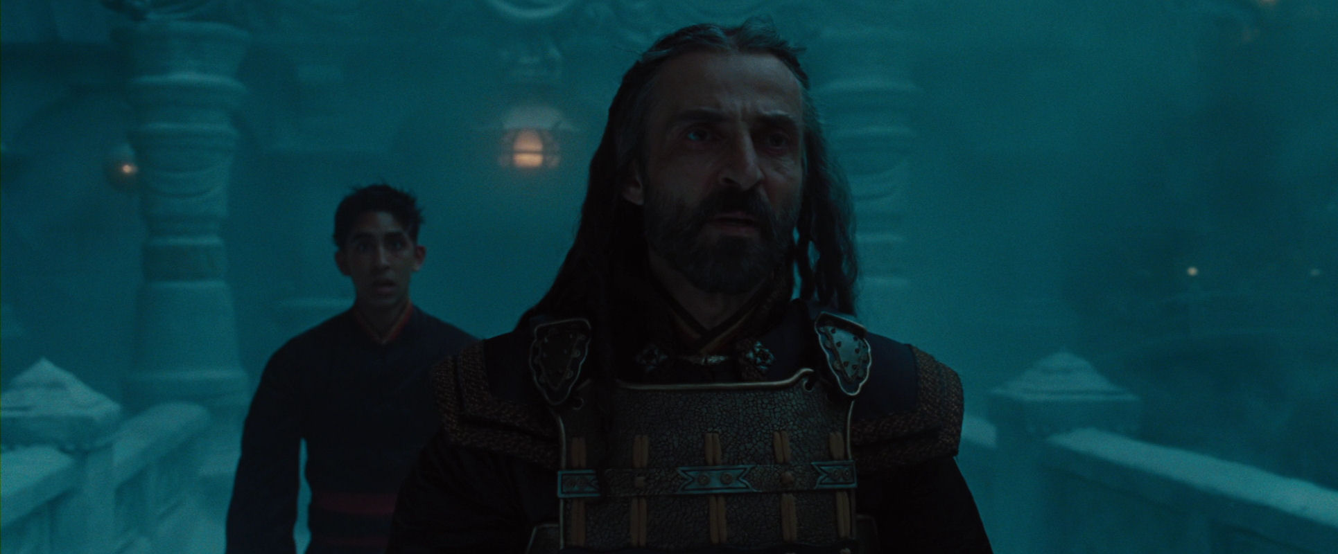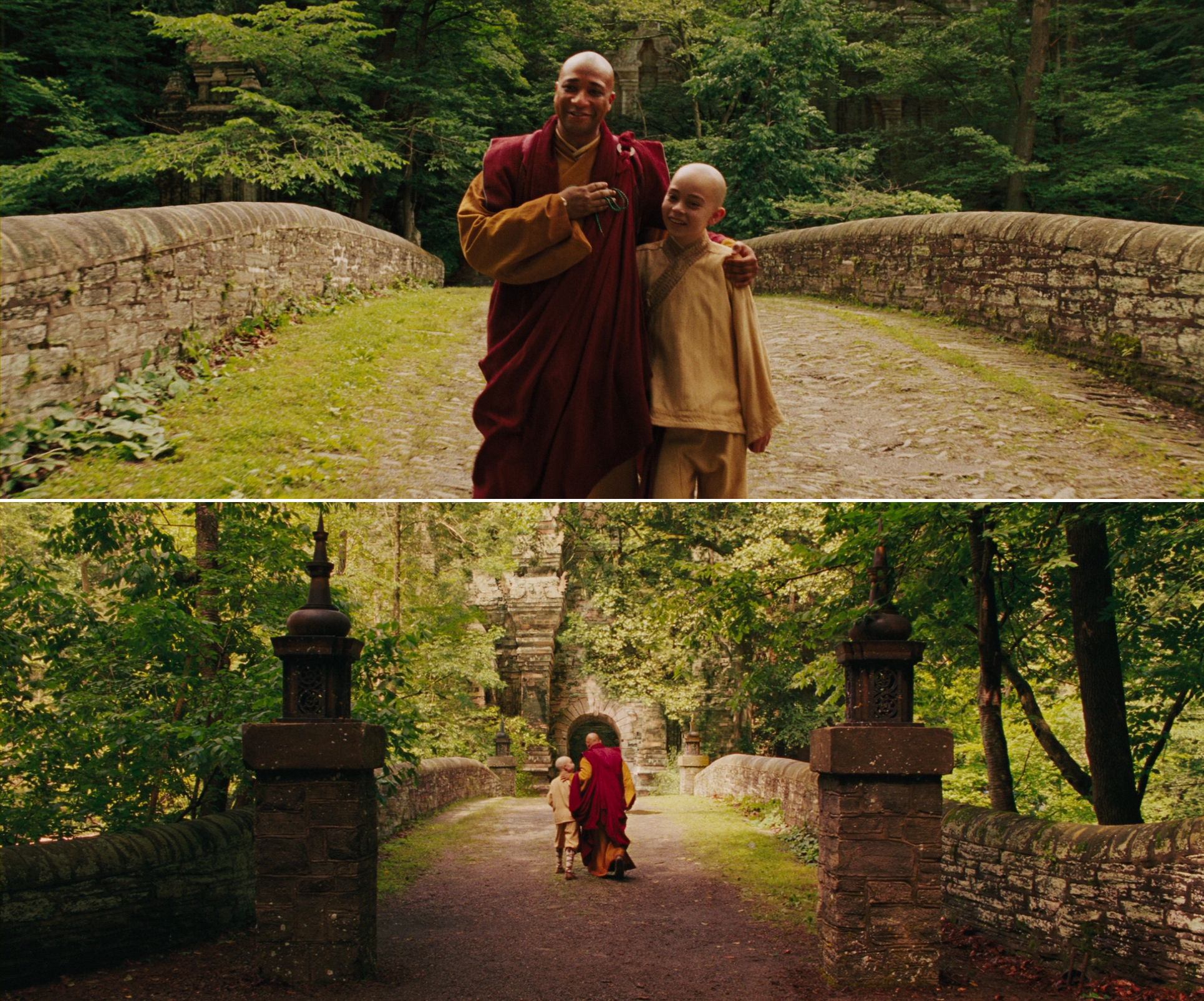 Many of the circular camera movements are shot in long takes. Nevertheless, The Last Airbender has a much higher rate of cuts than Shyamalan’s early works, which were mood pieces with much less plot to cover. With an average shot length of 6.8 seconds, only After Earth on 4.99 and Split on 5.96 are faster. This list of the longest takes of the film enumerates 22 takes of 30 seconds or more. If we split The Last Airbender roughly in half, starting with the chamber of statues scene, which includes the film’s longest take, at about 41:30 (the end credits start at 95 minutes), the first part, which contains only 5 of the 22 really long takes, has an ASL of 6.45 and the last part 7.1. At least judging from the cutting rate, the film grows slower the longer it lasts, an often-found characteristic of Shyamalan’s early films. So in this respect as well, he is adhering to his normal mode, but on a smaller scale.