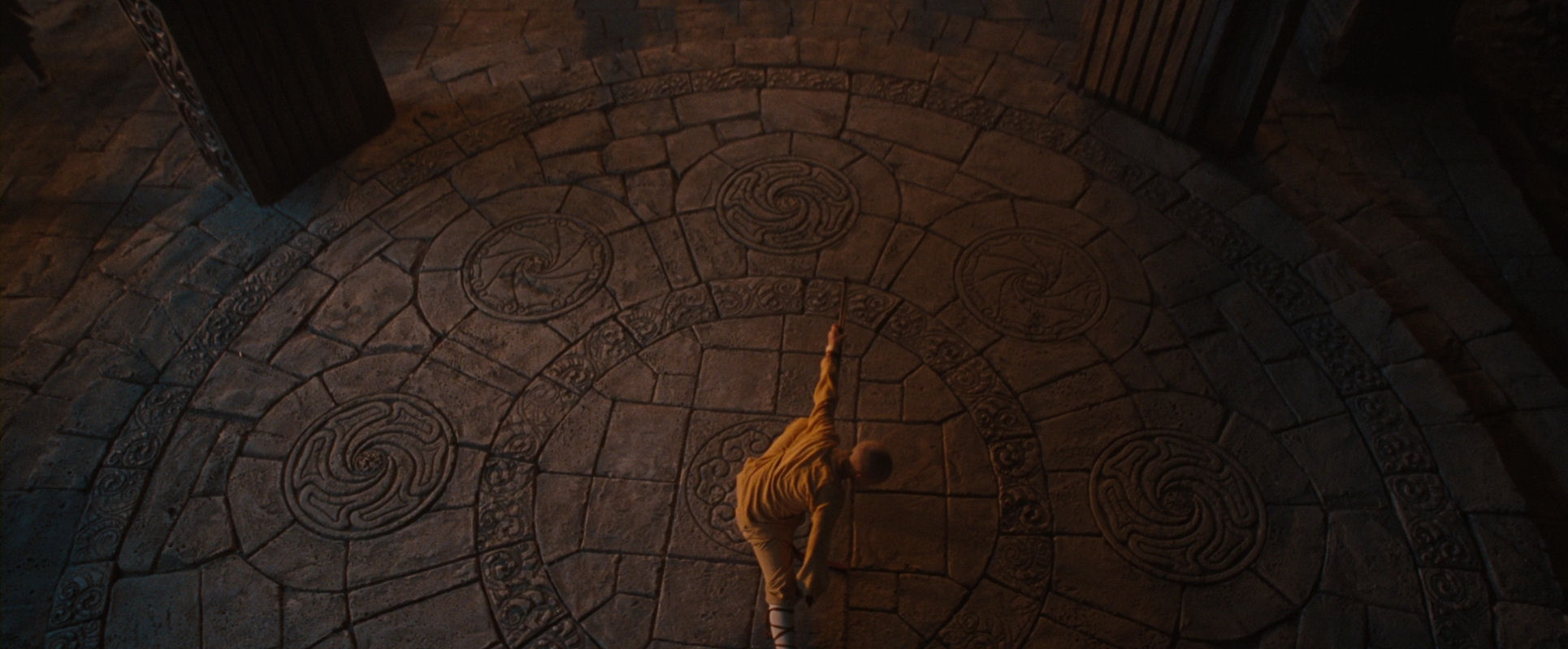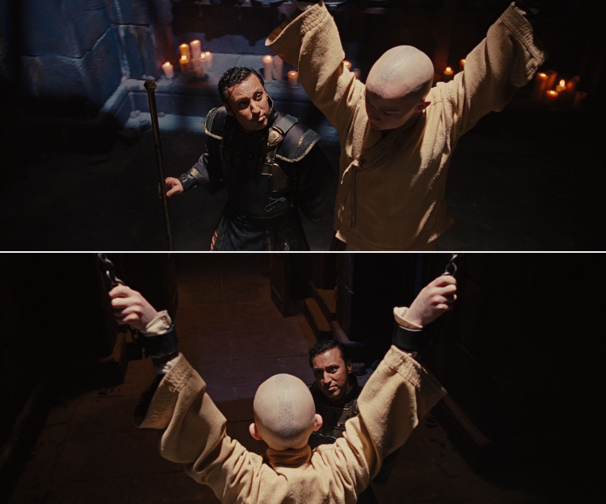 One of the most elegant applications of the circle motif happens in a brief flourish – a flash of inspiration, that I find to be among the best in Shyamalan’s oeuvre – just after Aang have been sprung from the dungeon. In the first article, it was described in detail (direct link here) as an apéritif for the circle motif, and it is highly recommended to have a look at that first. Here we will limit ourselves to repeating the images as a slide show: