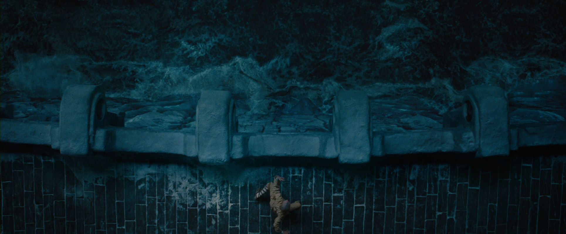 After three shots from the sea level, depicting growing confusion among the invading forces, this is the first real drama: the water is rising hard enough to overturn a bridge used for entering the city…