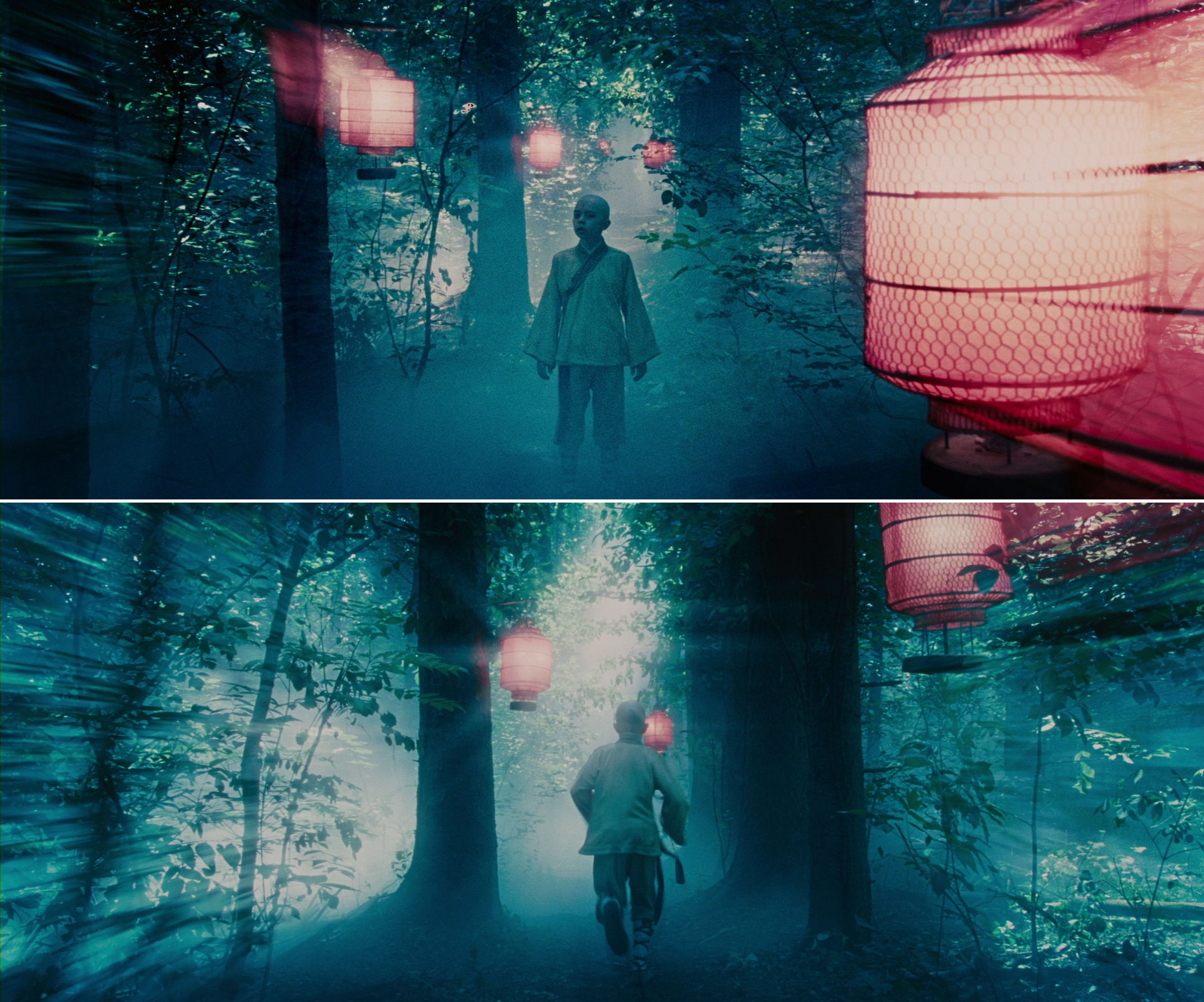The three Spirit World sequences are shot in an aesthetically pleasing, distorted mélange of layers, for example with incongruous lanterns, probably a symbolic way of showing Aang where to go.
