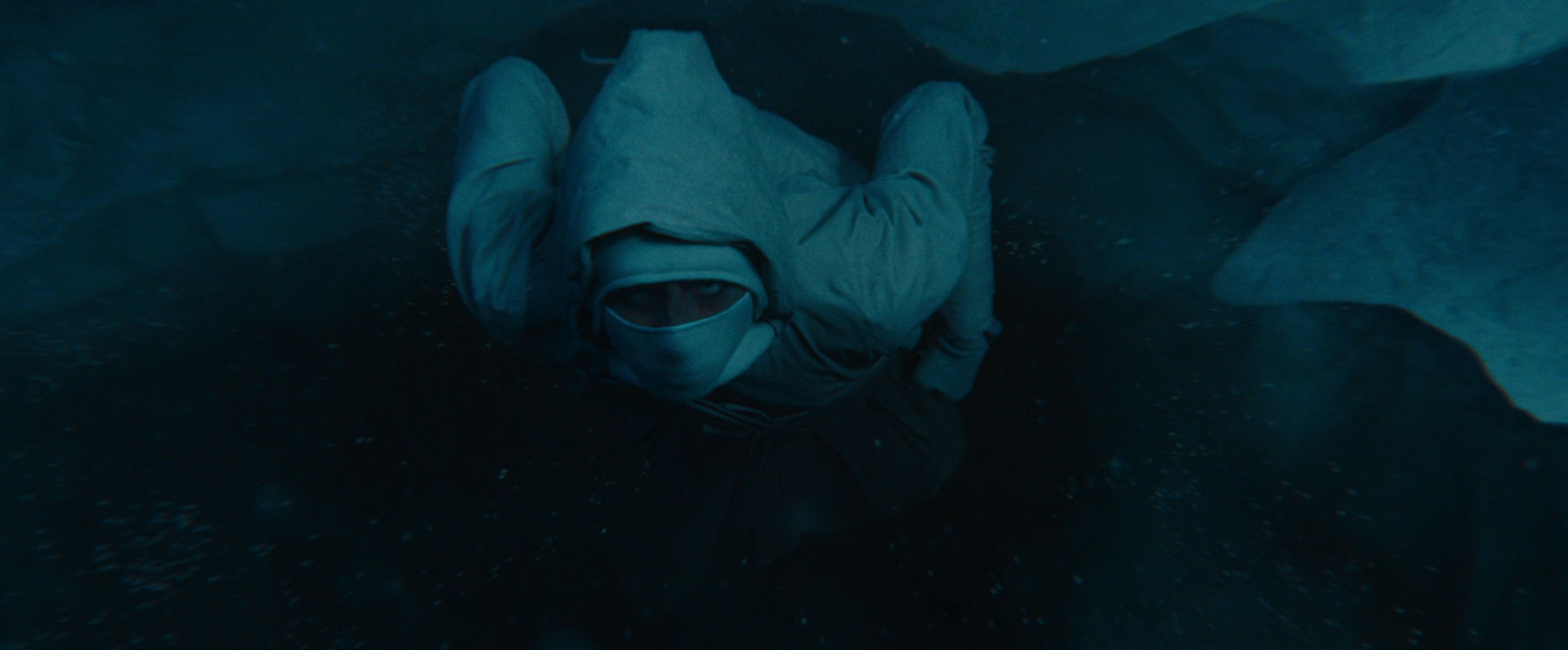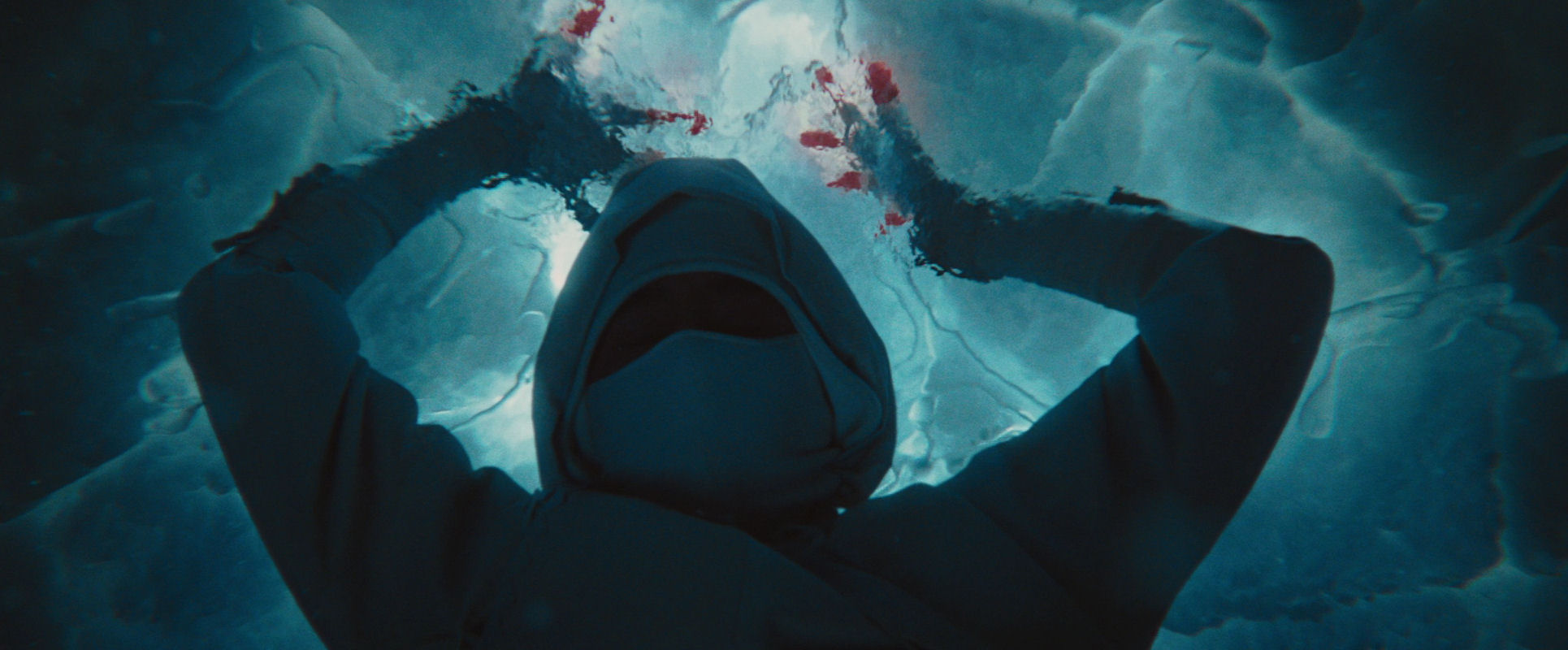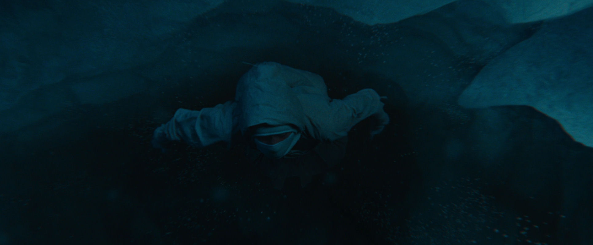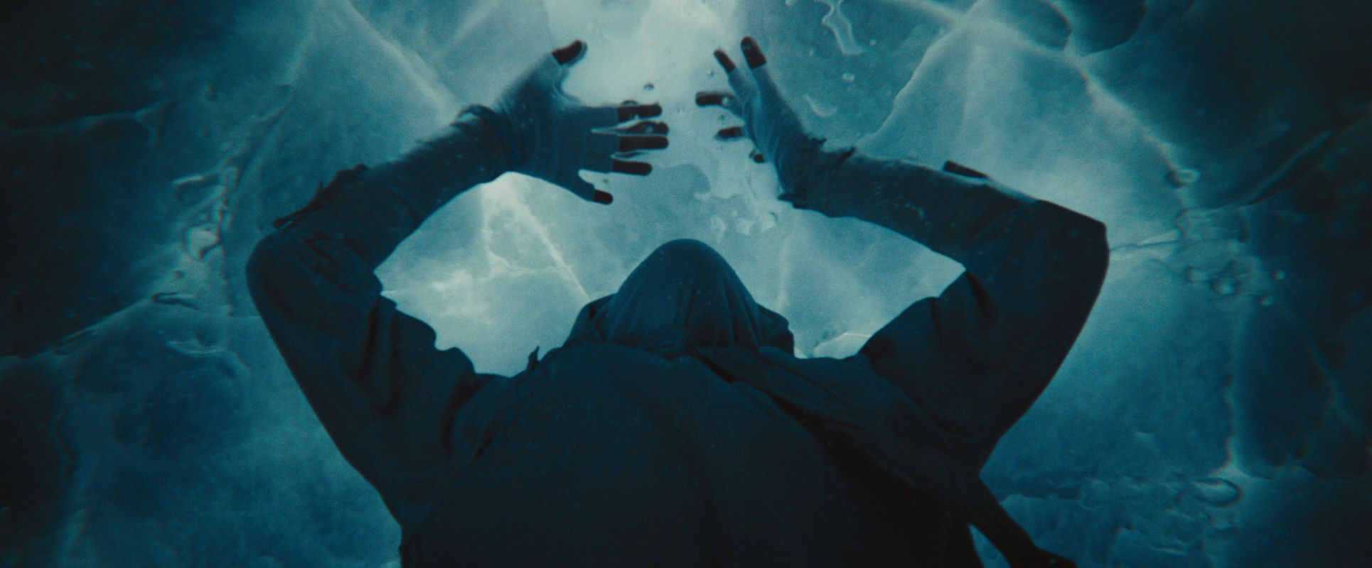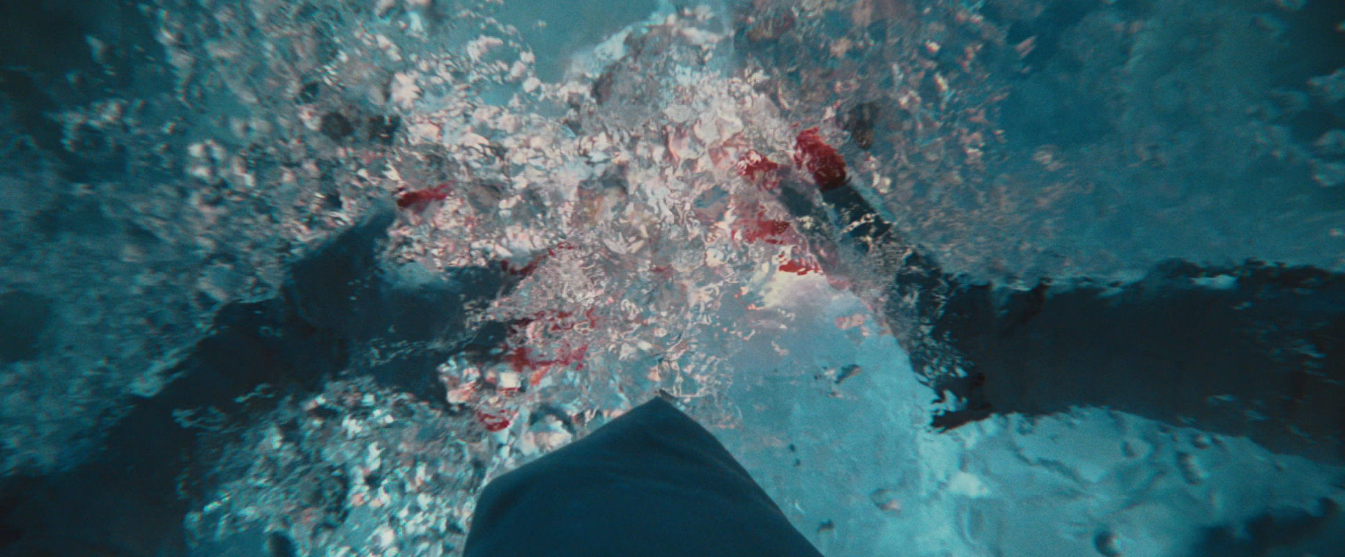 …while the image gets drenched in evocative flares from water particles, the threat of the water seems to force him out of the frame…