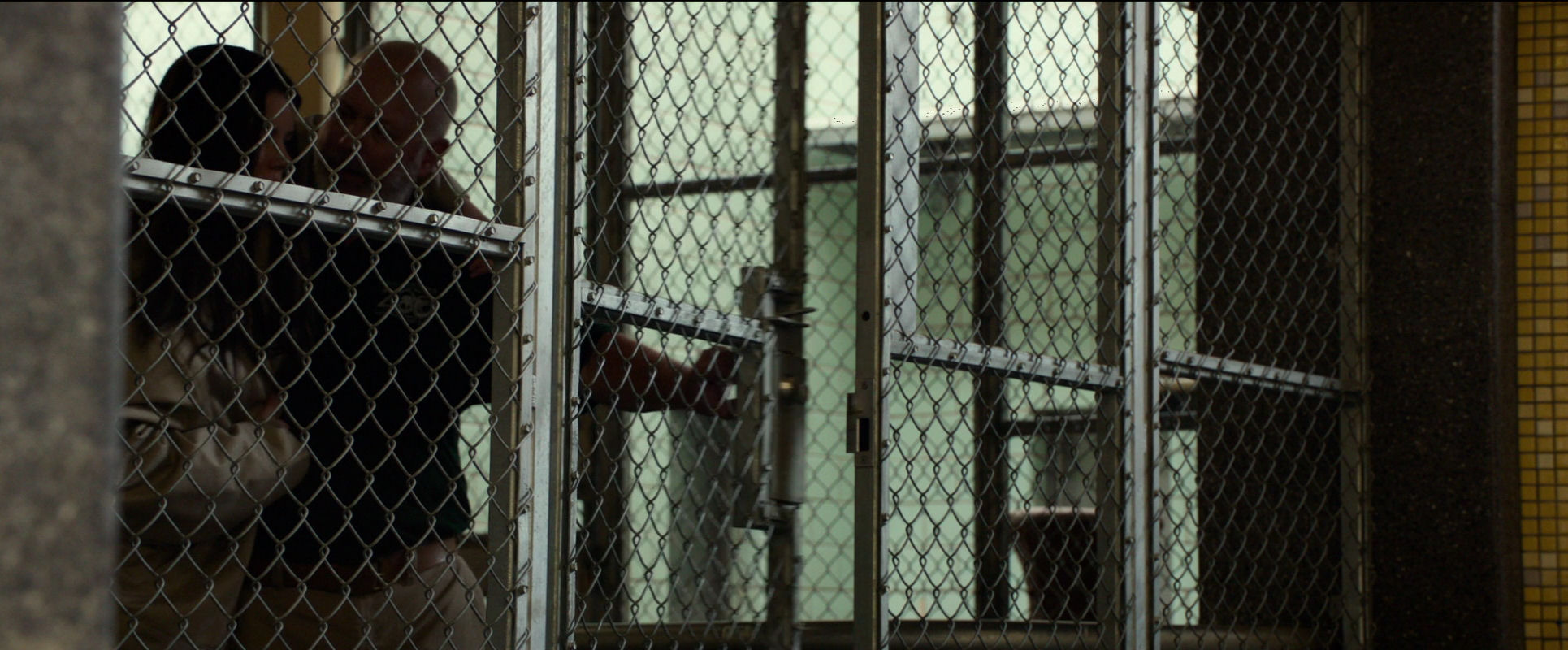 Their meeting of minds in the climax feels paradoxical since they seemed to occupy separate planes of existence in the car. They never appear in the same shot: all frames are clean and pure, without the intrusion of a shadow or half-glimpsed body part of the other. It is notable, however, that the resolution happens through the bars of the cage, with a certain apartness being maintained. Also, as the fourth article establishes, Casey and The Beast in fact only occupy the same frame only four times, and fleetingly at that.