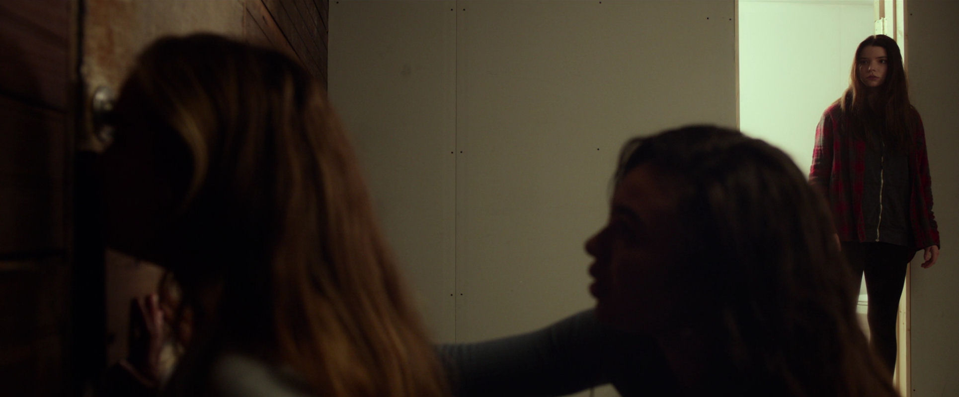 Since Split spends a lot of time in that room, it is understandable that Shyamalan felt a general need for visual variety, but the nature of the walls is also emitting a faint murmur about the film’s central issue. One should not make too much of it, because the correspondence between character and background is by no means applied with iron-clad consequence, but if ignored we would miss out on the film’s richness. In some cases the demarcation lines split shots roughly down the middle: