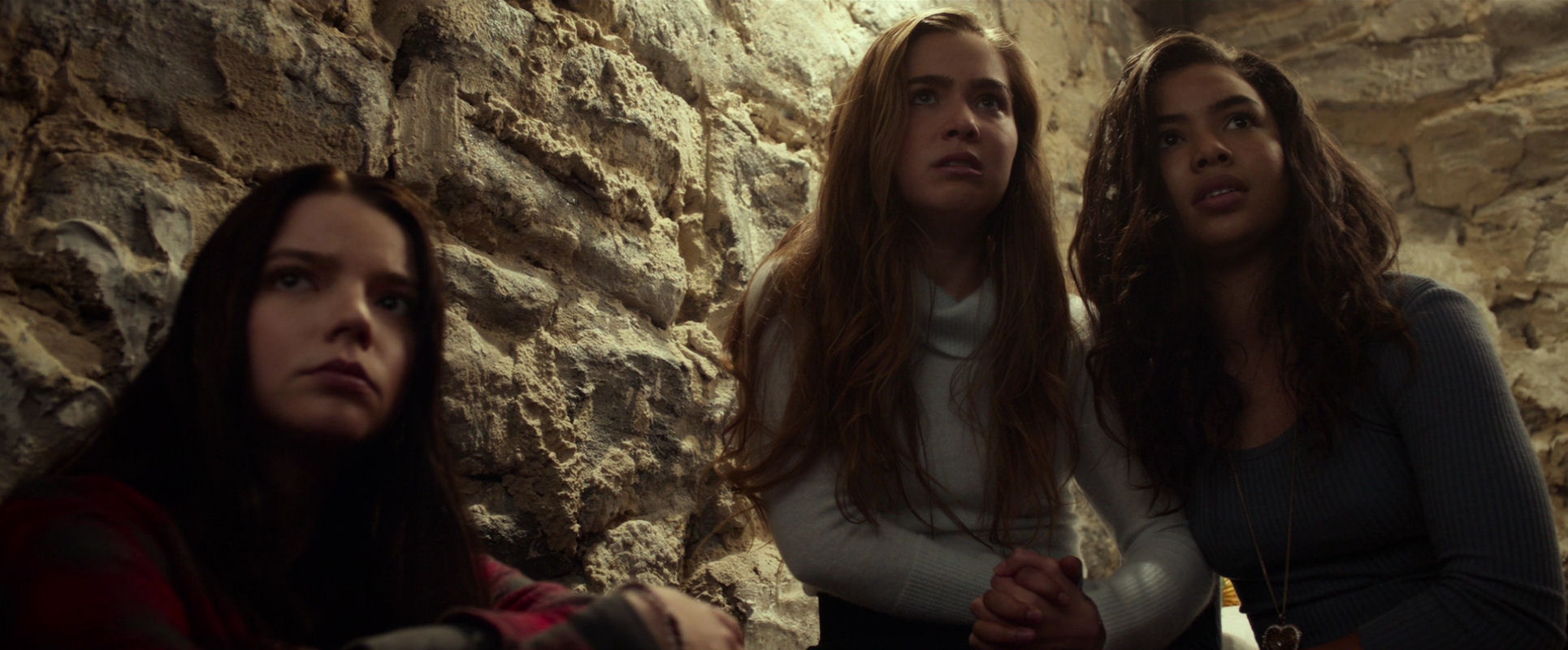 From these “pure” screenshots, this could be three different rooms. One wall is made of very solid-looking wood, with the door in the middle – as a background, this wall is often associated with Kevin’s various personalities, as the prison guard. Another wall is smooth and bright (with the bathroom as an additional light source) – often associated with Casey, since she turns out to be “pure”, according to The Beast’s worldview. The two remaining walls are made of rough stone – associated with Claire and Marcia, because they are “impure” – and there are two of them since these girls operate and are treated as a pair.