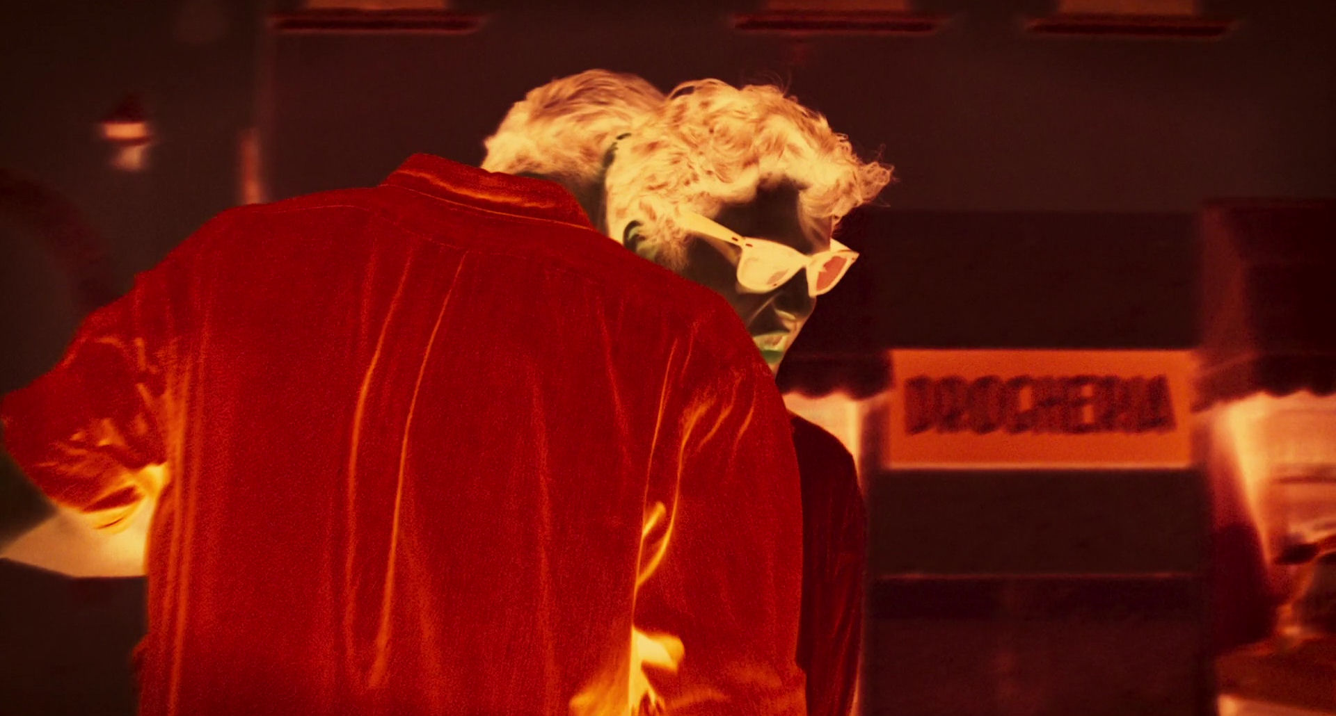 The piazza scene is underpinned by several developments and discrete elements. They are curiously mirroring each other, as if in tentative harmony: Both wear sunglasses and Oliver smokes for the first time in the film, like we saw Elio do for the first time in the disco scene – another pivotal moment since it was here his attraction to Oliver seemed to take hold in earnest, and given extra importance by introducing the film’s first tight close-up after as much as 28 minutes. Oliver offers a cigarette to Elio and both are smoking.