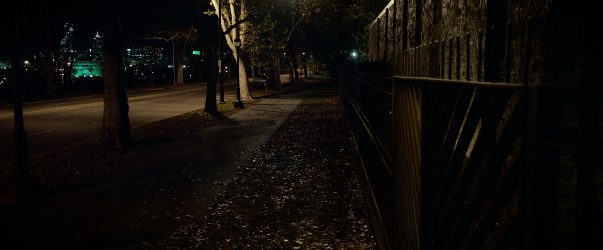 We have seen a very similar city view before, in the shot ending his scene with Dr. Fletcher at the gate. The rest of Philadelphia is depicted as a distant, different dimension, at a far remove from the fateful drama in the basement world of The Horde. (We see Center City, including Liberty Place, two buildings on view in many Shyamalan films.) The shot is ended by a fade to black, nicely rounding off this two-shot scene since it started with a fade from black.