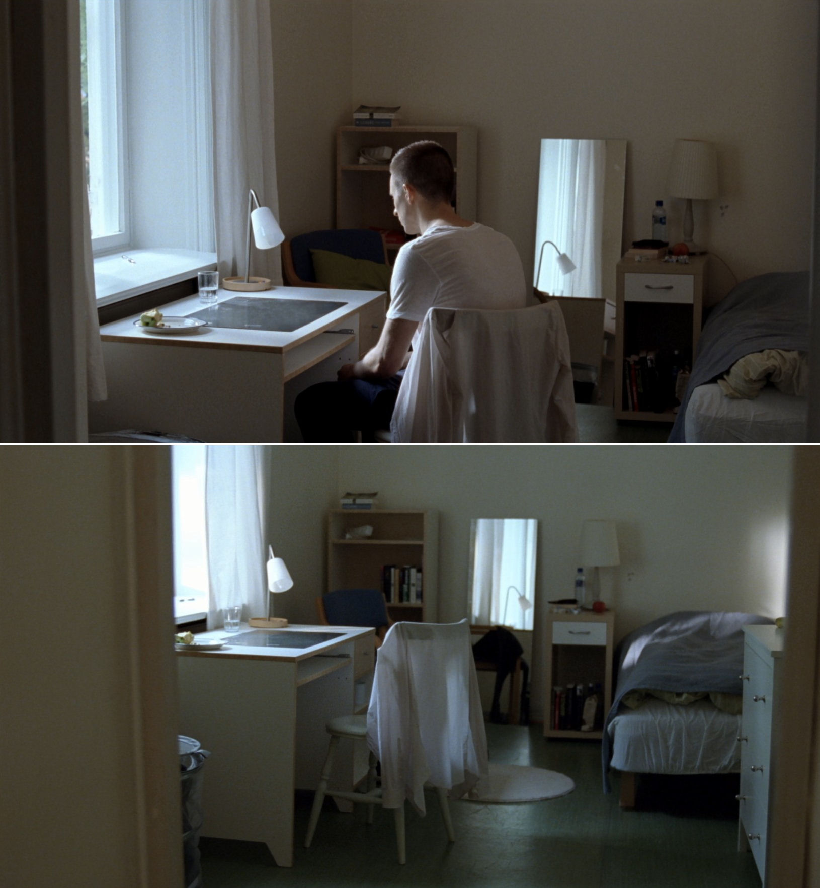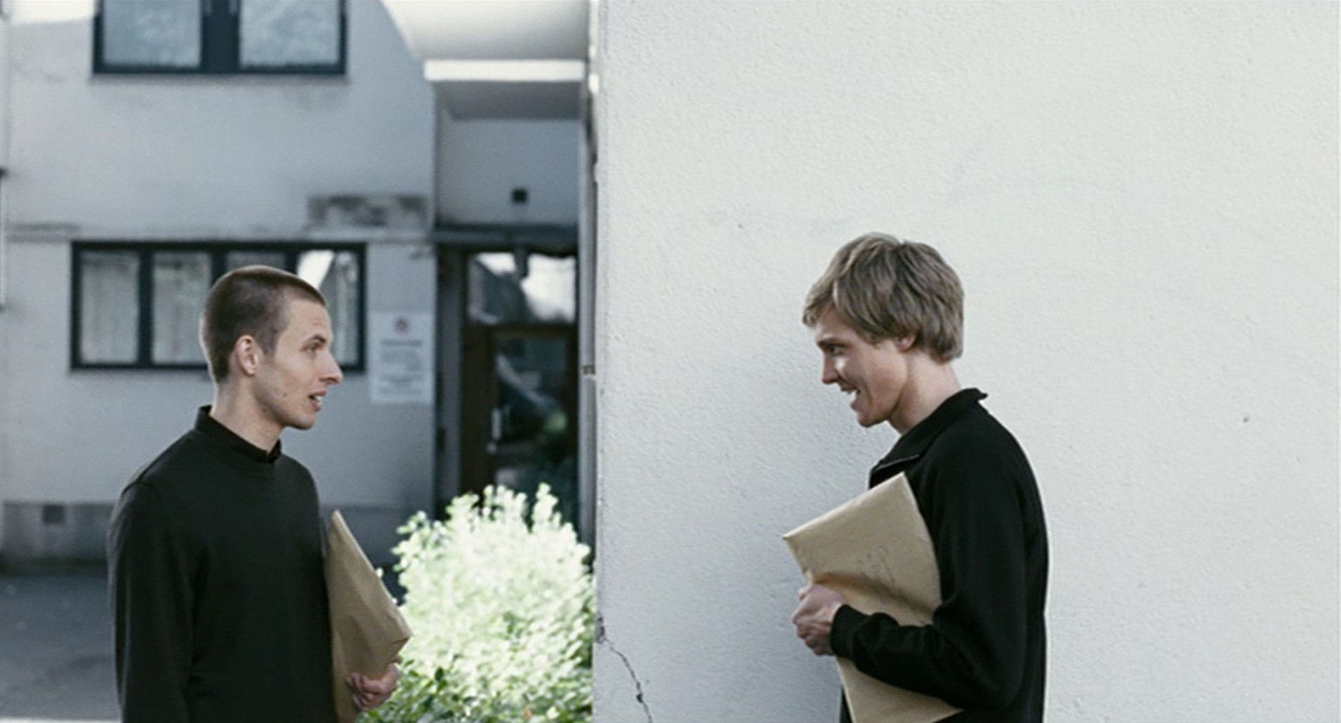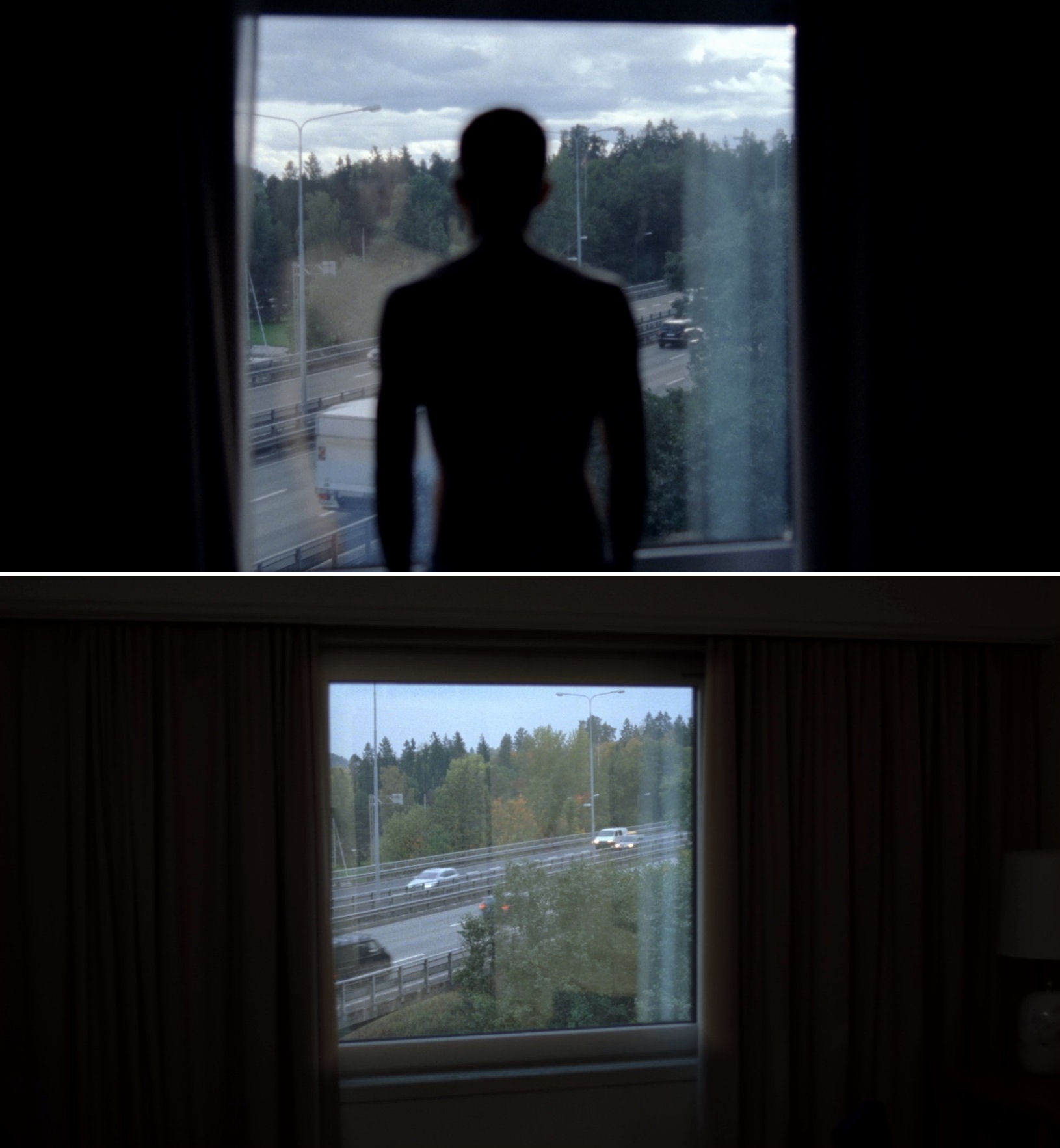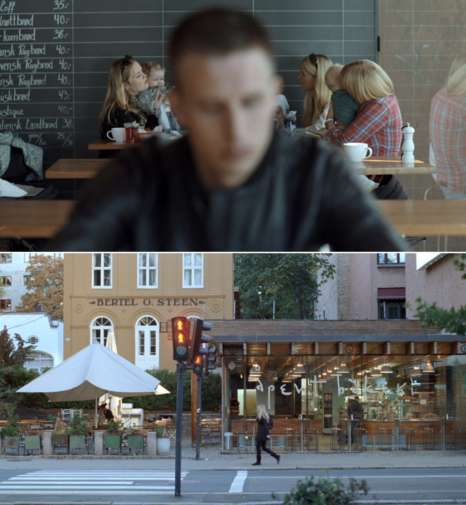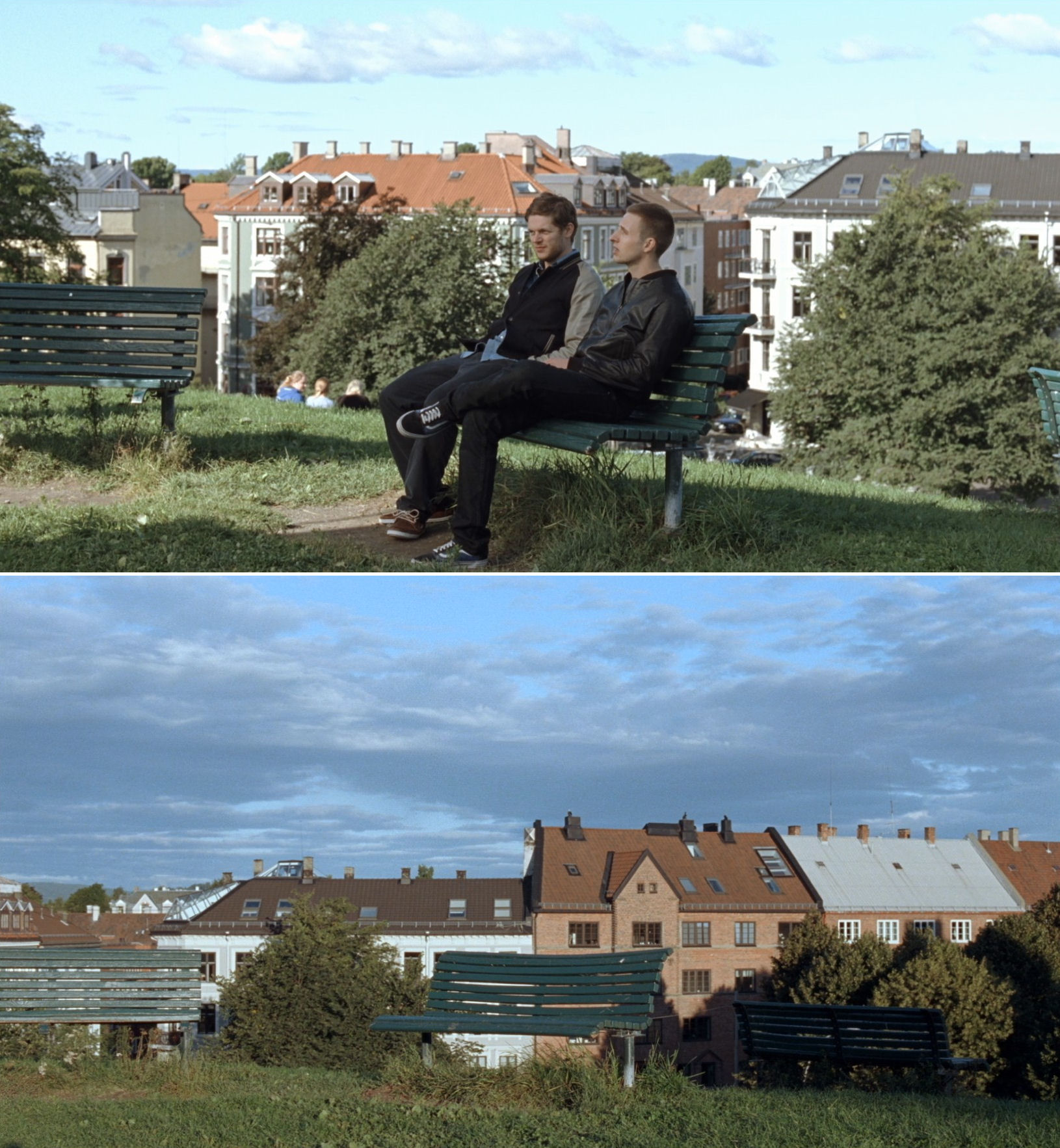 Since we are now playing around with Reprise and Oslo, August 31st, we cannot resist including an internal reference between them, marked by resigned black humour. From windows in their respective institutions, Phillip and Anders observe trivial actions, which stand in stark contrast with their own deep existential pain.