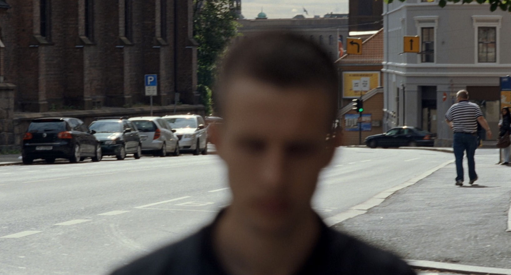 One of the most powerful devices in Oslo, August 31st is its concluding cavalcade of locations where Anders has been through the day, but now he is not present any more. The places are shown in reverse chronological order, leading us inexorably back to the hotel room where we first met him. A similar technique of images representing presence/absence is employed in Thelma. The method saw the light of day in Reprise, where we are shown shots of the same locations in Paris first without the characters’ presence (via a montage) and then with their presence as they eventually find themselves there.