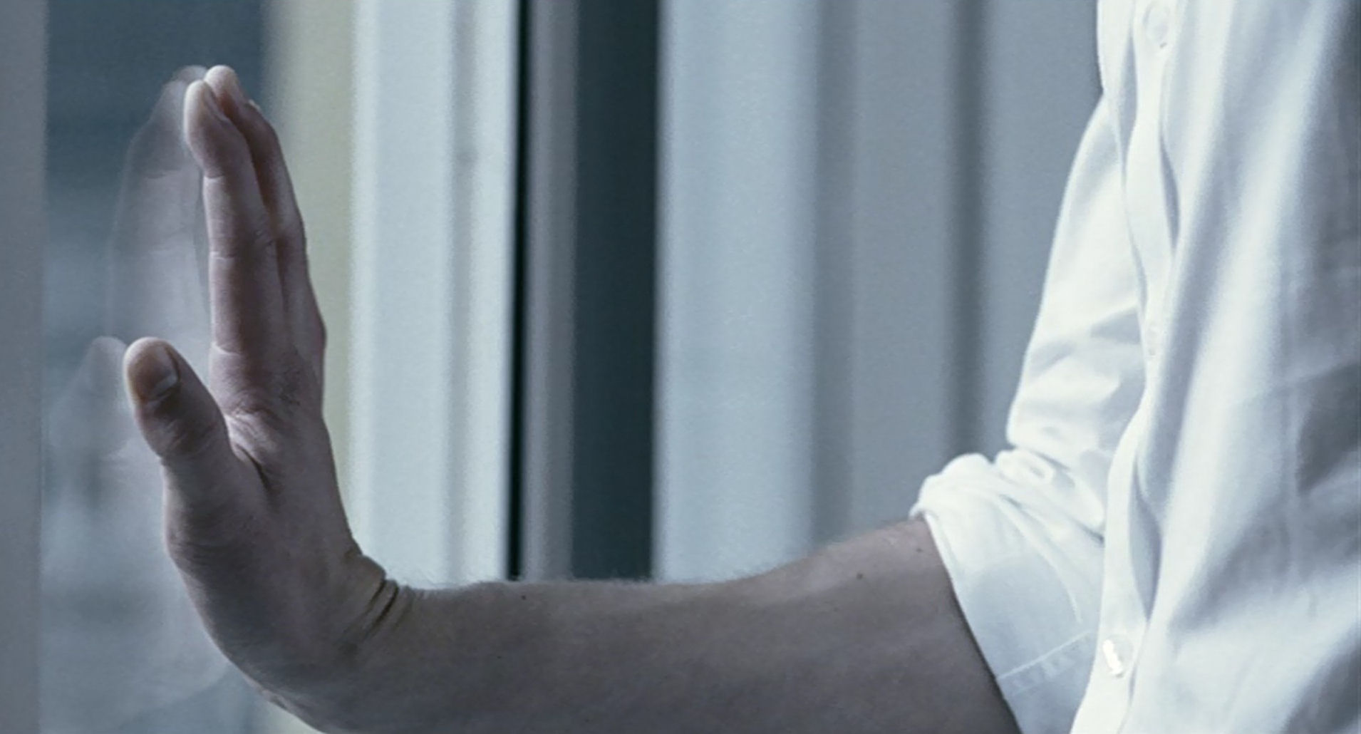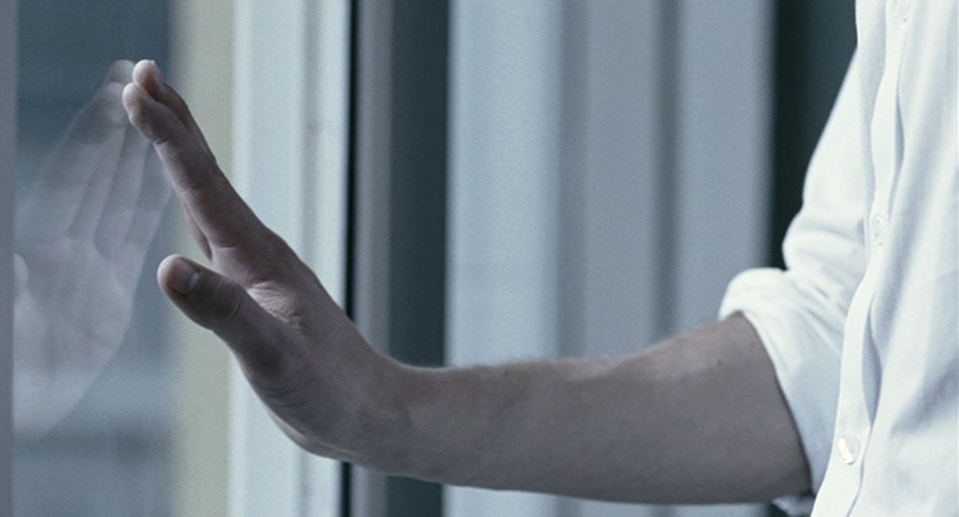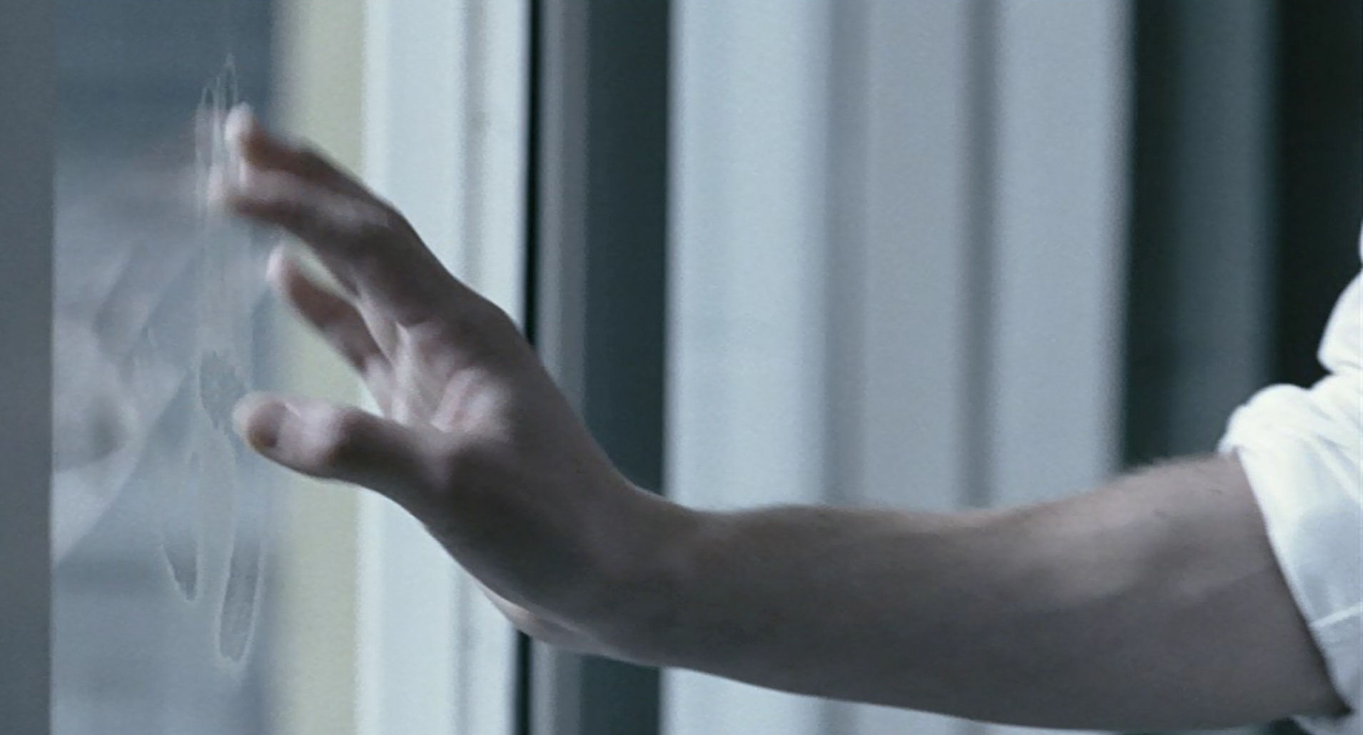 This is reminiscent of Phillip’s gesture in Reprise (in this slide show), which here is an expression of mental illness. After touching the window he is observing the trace of the hand inexorably being erased.