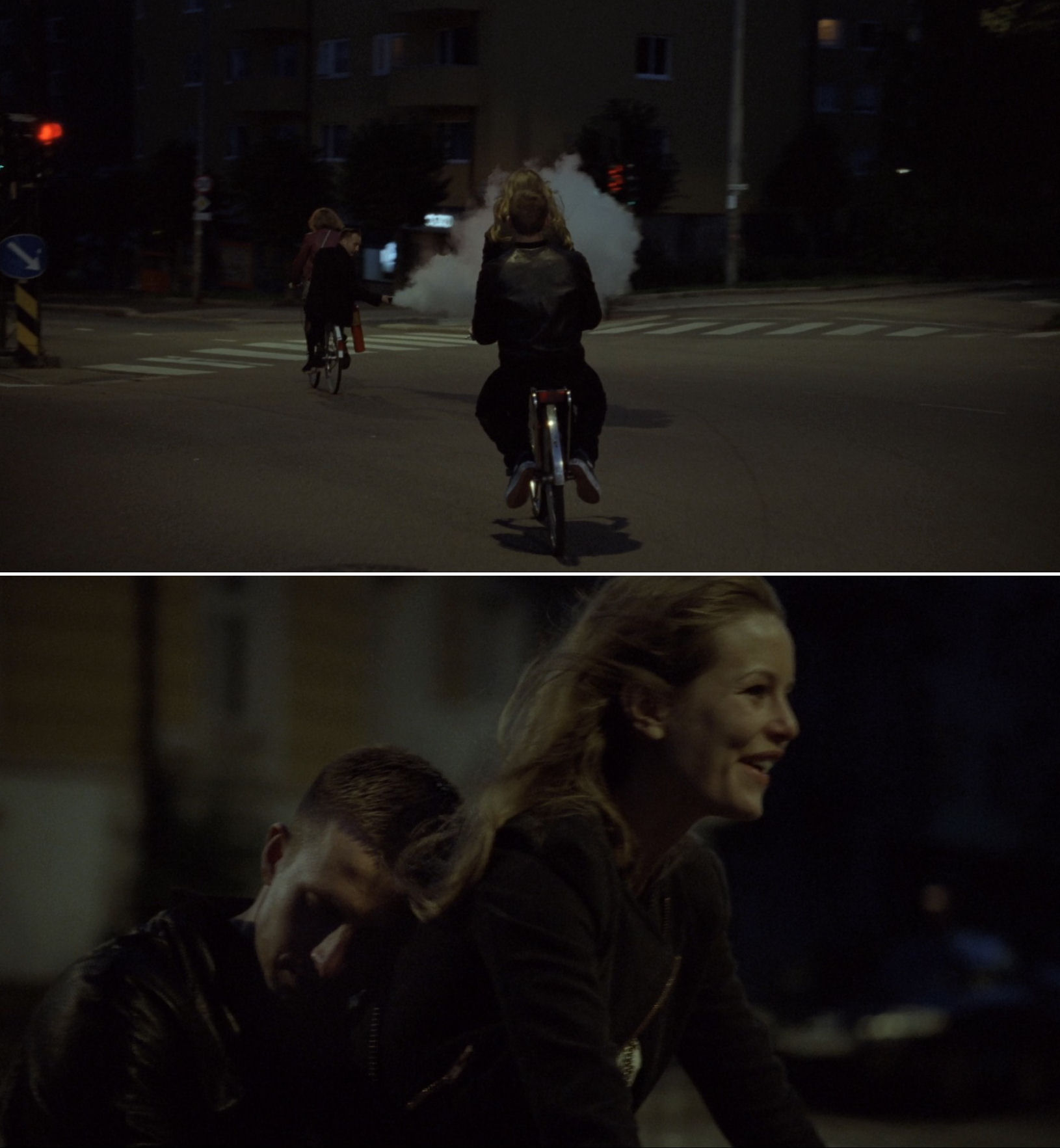 All of the films contain scenes taking place during parties, respectively “the party where everything happens” in Reprise; the birthday party in the home of Anders’s old friends Mirjam and Calle in Oslo, August 31st; the teachers party and the teenager party in Louder Than Bombs; the private party in Thelma. The Norwegian music journalist Martin Bjørnersen has pointed out to this author that dancing also occurs in all of the works: at the eventful party, the rave party, Conrad’s dance in his room when taken by surprise by Jonah, and at a discotheque in Thelma. The acrobatics of the cheerleaders in Louder Than Bombs also qualifies as some sort of dance, and the characters attend a ballet in Thelma. Finally, all the films feature situations where the editing is at times non-chronological in relation to the action.